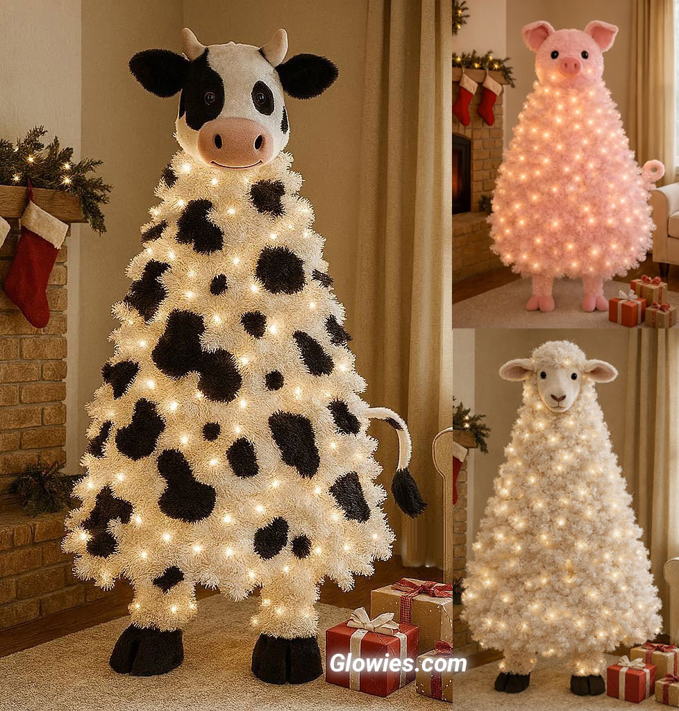 Animal-shaped Christmas trees turn holiday décor into a joyful piece of functional art, blending farmhouse charm with whimsical fantasy. Cow, pig, and sheep tree designs reimagine the traditional evergreen into sculptural silhouettes—layered branches forming gentle curves, fluffy textures, and playful details like ears, snouts, horns, or woolly shapes. These trees feel cozy and storybook-like, perfect for rustic homes, country-chic living rooms, or anyone who loves celebrating Christmas with personality and warmth. Decorated with ornaments, bows, lights, or even mini barn-inspired accents, they become instant conversation pieces that feel both nostalgic and completely new.